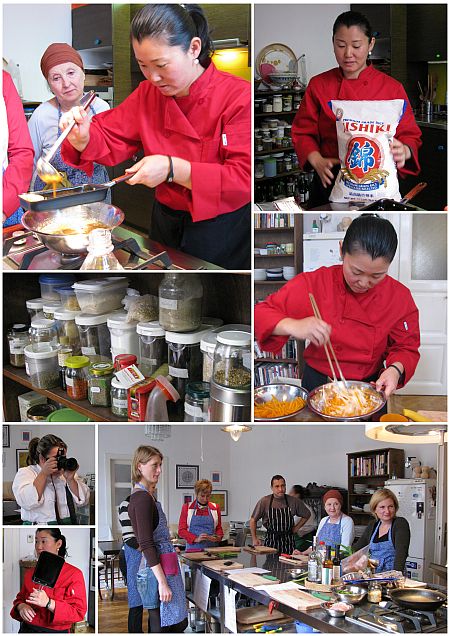 Miután már hosszan jegyzetelgettük a különböző alapanyagok válfajait, nekiálltunk és társat választva egy-egy fogás elkészítését vállaltuk, miközben fél szemmel figyeltük, hogy a többi páros mit hogyan készít el. Maki pedig folyamatosan közöttünk járt, javított, segített, s főzött.