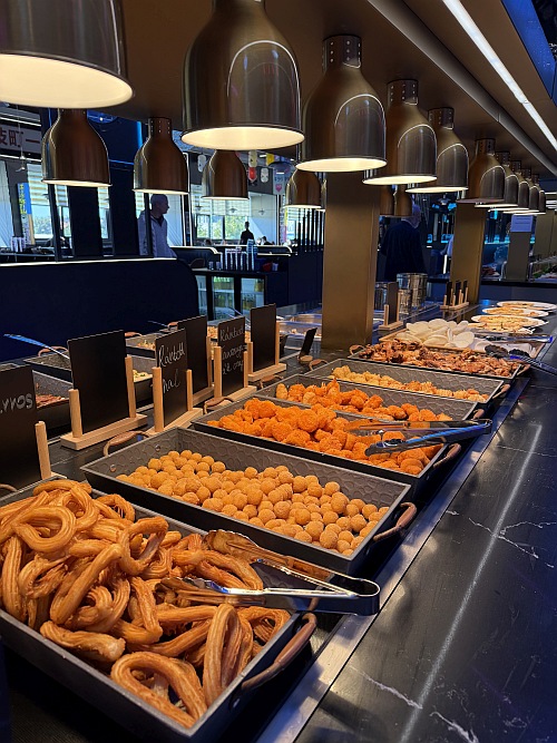 Desszert fronton az európai irány az erőteljesebb, többféle, szintén időről-időre változó kínálat jelenik meg a desszertes pályán, minimum 4-5 fajta pite, tortaszelet vagy falatnyi édesség közül lehet választani, van külön fagylaltos pult, friss gyümölccsel is zárhatjuk az étkezést vagy gumicukorral is tömhetjük magunkat.