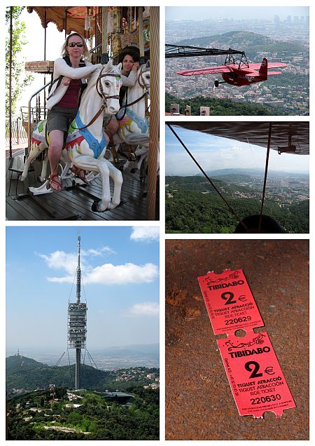 A hegyen lassan 100 éve üzemel egy régi repülőgép, amely a L’avió del Tibidabo néven ismeretes. A szerkezet a város fölött röpteti meg az utazókat, lassú köröket róva az őt fogva tartó oszlop körül, miközben a teljes körpanoráma kibomlik előttünk. A repülést követően a kezelő kérdő tekintetétől övezve (szerinte ugyanis ki lehet öregedni az ilyesmiből) még a karusszelre is felkapaszkodtunk, s nagy röhögések közepette vágtattunk Barcelona felett.