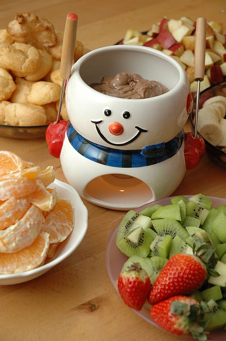 A fondue-be tehetünk ét-, tej- és fehér csokoládét, csak arra figyeljünk, hogy a hozzá kínált falatok is igazodjanak az ízekhez. A tej- és fehér csokoládé esetén a kevésbé édes, savasabb gyümölcsöket érdemes kínálni, míg az étcsokoládéhoz jobban passzolnak az édeskésebb gyümölcsök. A gyümölcsök mellett mini égetett fánkokat is kínálhatunk.