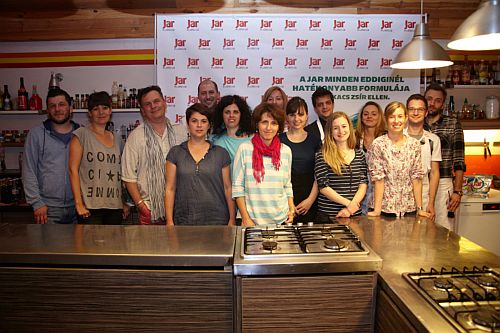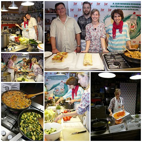 Kedden délután a Chefparade-ban egy nagyon klassz kis csapat gyűlt össze, hogy a Jar jóvoltából örömfőzéssel töltse a délutánt. Az új termékekkel piacra lépő, valamint az ennek kapcsán mindenféle gasztronómiai megmozdulásban gondolkodó cég elképzelése az volt, hogy újságírókkal, bloggerekkel közös főzős szeánszot rendez. A résztvevők Bereznay Tamás értő pillantásától és tanácsaitól vezéreltetve közösen megfőznek egy klassz vacsorát, majd mindent meg is esznek, miközben az edényeket elmossa a Jar.