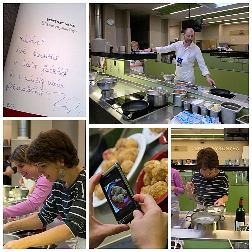 Tulajdonképpen minden szakácskönyvet úgy kéne bemutatni, ahogy tegnap Bereznay Tamás tette. Egy rövid, velős, laza és kellően őszinte sajtótájékoztató után, kisvártatva a Metro Gasztroakadémiájának konyháján találtuk magunkat, ahol a könyvben is szereplő egyik recept alapanyagai, habüstök, kötények vártak ránk, s a feladat, hogy főzzük meg a könyv 168. oldalán található túrógombócot.