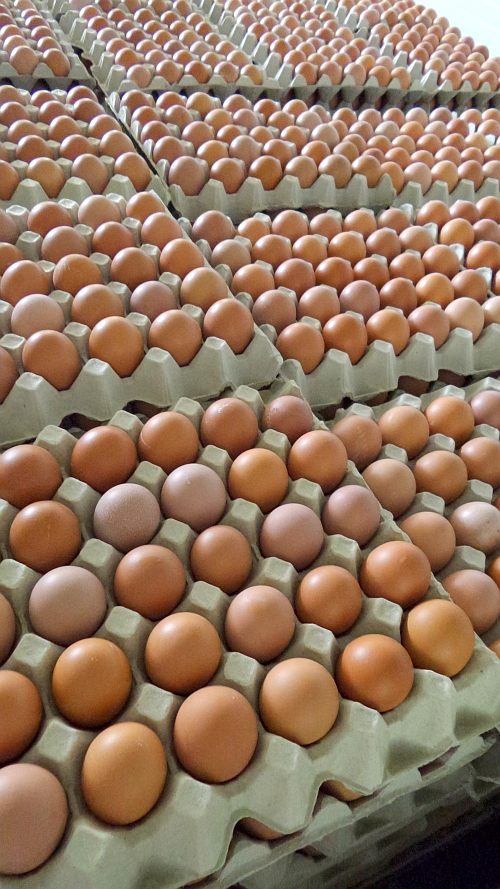 A tyúkok, akik a tojásokat biztosítják – sőt, szakzsargonnal élve: termelik – nem Bőnyben találhatóak, hanem az ország számos pontján lévő telephelyeken, ahonnan Bőnybe érkezik a friss tojás, majd megkezdi vándorútját a hiperszuper extraokos gépsorban, hogy csak és kizárólag a legjobbak kerüljenek az asztalunkra.