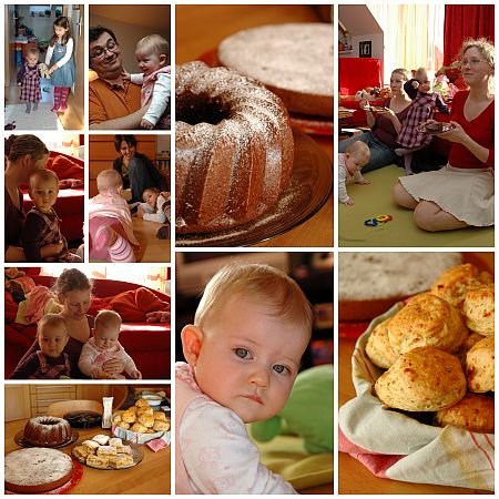 Készítettem egy gesztenyetortát, volt kakaós kuglóf, meg egy kis anya-féle almás pite és hogy valami sós is legyen, sütöttem egy nagyobb adag sajtos-tejfölös pogácsát.