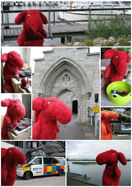 Irigylésre méltó dolga van a piros plüsskutyánknak, leszámítva, hogy rádióamatőrködésre van időnként kényszerítve.