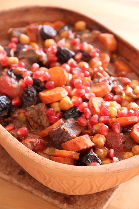 A visszatért étvágyunknak köszönhetően, szombaton végre valamilyen rendes, kiadó étellel készülhettem. A tél már kikezdett minket, hegyekben esszük a narancsot és az almát, így aztán nem csoda, hogy egy gyümölcsös ragun akadt meg a szemem, a nagy receptvadászat közben. Péntekre már csak az alapanyagokat és egy speciális fűszerkeveréket a Ras el hanout-ot kellett beszereznem.
