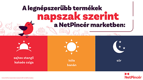 A NetPincér market mindennapi rendelései terén a szénsavas üdítők viszik a prímet, amellyel csak a sörrendelések száma vetekedhet. Harmadik helyen áll a banán, negyedik az ásványvíz, ötödik a császárzsemle, a hatodik legnépszerűbb termék a tej. Reggel a kakaós csiga a kedvenc, mellettejól fogy a sajtos stangli és a császárzsemle is. Ebédidőben meglepő módon a kóla- és banánrendelések ugranak meg a NetPincér marketben, az esti lazításhoz pedig úgy tűnik, jól jön a sör.