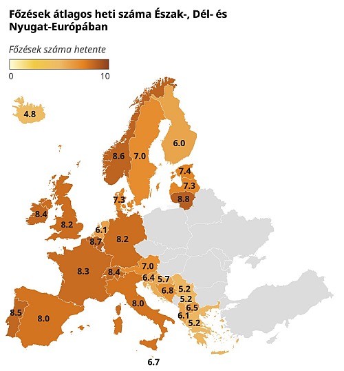 Az idei eredmények szerint a magyarok hetente átlagosan 4,2 alkalommal készítenek otthon friss ételeket (ez 2018-ban még 4 nap volt), és 6,9 alkalommal fogyasztanak otthon főzött ételeket a nagyságrendileg hétre eső összesen 14 étkezésből, ebédből és vacsorából. A magyar 6,9-cel szemben a világon átlagosan hetente 9,8 alkalommal esznek az emberek otthon készített ételeket, Európában pedig 10,7-szer. Venezuelában főznek a leggyakrabban, átlagosan 8,9 alkalommal hetente, amit Belgium követ (8,7), majd Laosz (8,6) és Norvégia (8,6). A legkevesebb alkalommal Jordániában (2,5), Libanonban (3,2) és Dél-Koreában (4,0) főznek otthon az emberek.
