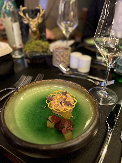 Elénk is az ősz és tél ihlette fogások kerültek, nem csak a tálalás volt tökéletes, az alapanyagok minősége, az elkészítés módja és az egyes tételek közötti egyensúly, összhang is a helyén volt. A vacsorát a bodrogkisfaludi Patrícius Borház borai tették teljessé, erős felütés volt egy kései szüret a kacsamáj mellé, de a kivétel erősíti a szabályt, a borsor remekül működött ezzel a szokatlan entrée-val is, az italok szépen keretezték a fogásokat, közben Molnár Péter értő tolmácsolásában mindent megtudtunk a botrytis-ről, az aszúszemek különlegességéről, a ress furmintokról és magáról Tokajról.
