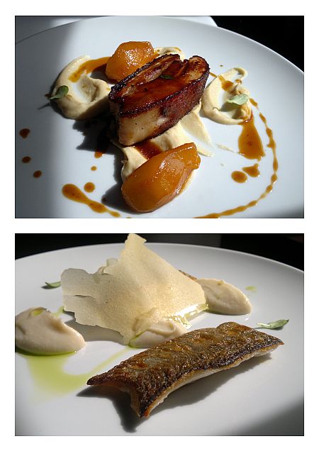Mi a békés, napos zugunkból figyeltük a Gellérthegyet, miközben elénk került a következő fogás. Anya bőrén sült pisztrángot kapott, karfiol pürével és édesköménnyel, én egy tisztes darab malac hasaalját kaptam, fehérrépapürével és karamellizált körtével körítve. A fehérrépapüré régi kedvencem, mégis igen ritkán találkozom vele étteremben. Mivel a legtöbb ember nem szereti, ezért a séfek nem merik bevállalni,pedig a fehérrépa püré formában szinte verhetetlen. A hús – a bisztró mennyiségektől eltérő módon – igen tisztes darab volt, jól elkészítve. Anya haláról mindezt már nem lehetett elmondani, bár ízre, elkészítésre tökéletes volt, a mennyisége kívánnivalót hagyott maga után.