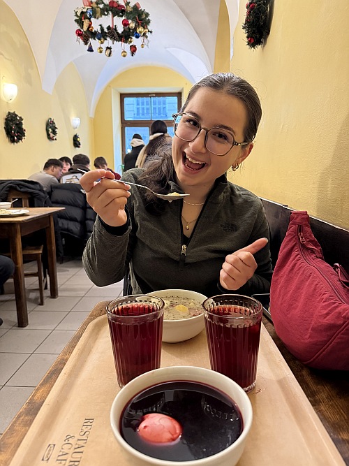 Nem is késleltettük a gasztronómiai élményt, tempósan átsétáltunk a ködbe vesző belvároson, intettünk a Posztócsarnoknak, majd a Wawel felé folytattuk az utat, de a vár helyett a kedvenc tejbárunkig mentünk csak.