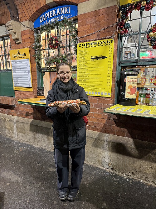 Nem is volt. A kiállítás után átsétáltunk a Visztula fölött, vitt a lábunk keresztül a zsidó negyeden, egyenesen a Plac Novy-ra, ahol Anna rögvest be is gyűjtötte a kedvenc melegszendvicsét, a zapiekankát, majd a belváros számos csodás üzletében tettünk kitérőt, végül pedig a szálláson csinosabba ugrottunk, hogy megfeleljünk az est nívójának, ami várt ránk.