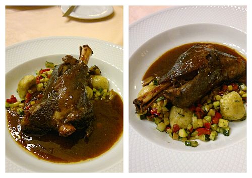 A könnyű, halas fogás után következik az új-zélandi báránycsülök, amelyet először sous vide eljárásnak vetnek alá, majd kemencében sütik olyan omlóssá, hogy kanállal könnyedén leforgatható a hús a csontokról. A bárányhoz apróra metélt párolt zöldséget kapunk, valamint krumpligombócokat. A bárány esetében is az egyszerűség vezette a séf kezét, a hús önmagában kiváló, kevés fűszer siet csak segítségére, hogy a megfelelő hangsúlyokat megkapja. A fokhagyma, a zsálya, a rozmaring és a fehér bors pont elégséges ehhez. A bárányhoz a ház borát fogyasztjuk, a Twickel Borbirtok Cabernet Franc bora tökéletes választásnak bizonyul.
