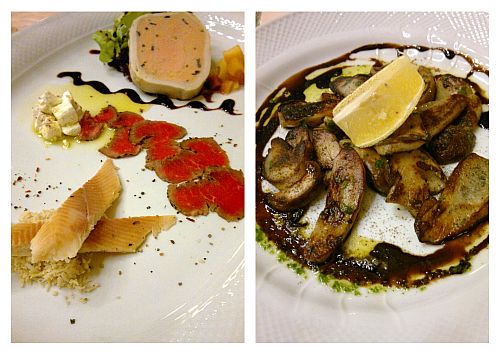 Az étlapon szereplő ételek listája kellemesen és hihetően rövid, a különféle ételnevek megfejtéséhez nincs szükség szakszótárra, a nyakatekert szólamok helyett a minőségi alapanyagokon van a hangsúly. Az előételek közül akaratlanul is a két kedvencbe sikerül beleválasztanunk. A fokhagymás vargányagomba roston sütve ugyanis a törzsvendégek egyik kedvence. Az egyszerűen elkészített, csupán kis petrezselyem pesto-val és balzsamecettel körített fogás hibátlan. Nem akar többnek látszani, nincs túlaprózva, harapható ízletes falatokban kínálja magát. A gombáról lecsöppenő pesto és a kellemesen sűrű balzsamecet sem vész kárba, – illik vagy sem – házi kenyérrel kisimogatjuk a tányérból. A másik előétel, a ház saját fogása, a Múzeum ízelítő. Kisebb kapacitással rendelkezők számára akár főfogásnak is elmehet a tormaágyon pihenő házilag, tölgyfán füstölt pisztrángból, fafülgombával ízesített, szalonnába tekert libamájpástétomból és bélszín carpaccio-ból álló fogás.