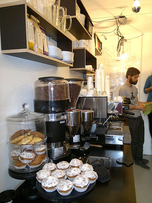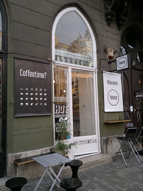 A fekete esetében minden adott. A végtelenül pici kávézóban nem az enteriőr otthonossága, a süppedős fotelek, vagy a kimérten udvarias pincérek teremtik meg a visszatérésre ösztönző légkört. Itt a fiatalos, bohó, kiforrott és a folyamatos fejlődést magában hordozó hangulat, a tulajdonosi lelkesedés és jelenlét az, amely az áprilisi nyitáskor már megteremtette ezt a törzsközönséget. A hely leginkább az elviteles kávékra szakosodott, de ha szerencsénk van, akkor a boltban lévő bárpultnak dőlve (mint az olaszok) vagy az utcán sorjázó padokon megpihenve is felhörpinthetjük a ristrettonkat vagy gyönyörködhetünk a tejes kávék tetején kirajzolódó barátságos mintákban.