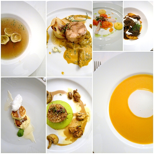 Amíg a szálló vendégszeretetét élveztük, szerencsére többször is sikerült az Eszenciában ennünk. A menüsorok minden esetben tükrözték a fiatal séf, Bákonyi Lajos Sámson lendületét, megmutatták, hogy honnan merített ihletet, s összességében nagyon kerek, kellemes egységet alkottak. A délben kínált – gasztrotúrára rendelt, könnyített – menüsor kiemelkedő eleme volt a sült sütőtökből készített krémleves, amelynek finom összhangjait a hozzá kínált kókuszhab adta meg, illetve a levesben pihenő, szokatlanul hangsúlyos és újszerűen ható licsi.