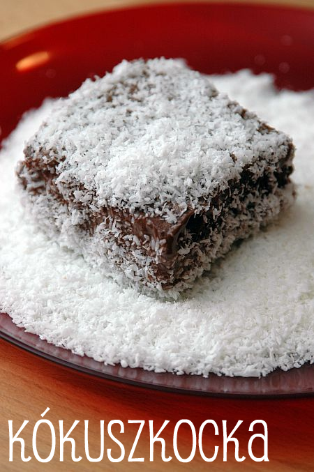 20 perc után kiveszem a tésztát a sütőből. Hagyom a tepsiben kisülni, majd 12 kockára szelem. A kockákat egyenként megmártom az olvasztott csokoládéban, majd kókuszreszelékbe panírozom. A kész kockákat egy rácsra teszem szikkadni.