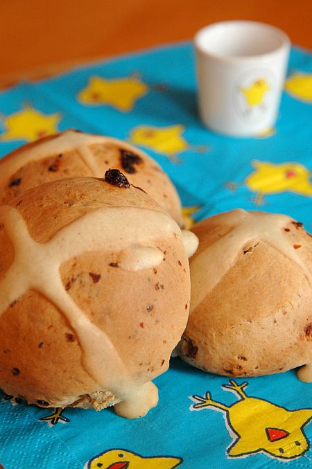 A Hot cross bun régi angolszász húsvéti kenyér, finom, ízes és könnyen elfér belőle kettő a kabátom zsebeiben.