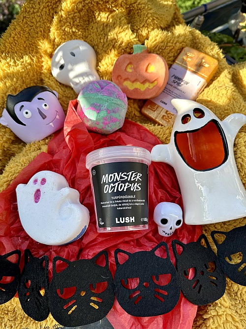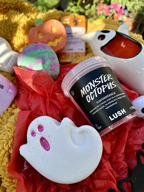 A Lush-ban azt is nagyon szeretem, hogy mindig mindent humorral közelít meg. Egyszerűen érti és érzi, hogy miben rejlik – bántás nélküli – kifigurázási lehetőség, hogyan lehet valamiből bölcsen viccet csinálni, és amikor az évnek elérkezik az évnek ez az amúgy is a fonák humoráról ismert időszaka: a Lush – és vele együtt mi is – tobzódik. A halloweeni kollekciónál vannak ikonikus, mindig visszatérő elemek és mindig vannak kedvesen szellemes újdonságok, amelyekkel tovább fokozható a fürdőszobai rituálé, elnyújtható, gazdagítható a megtisztulással és feltöltődéssel járó énidő.
