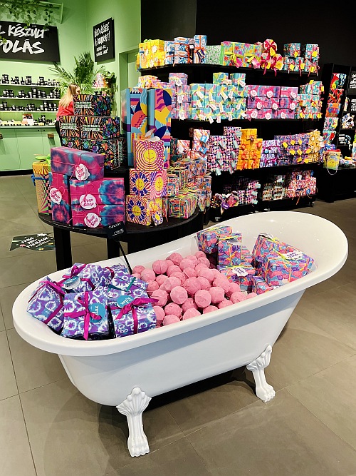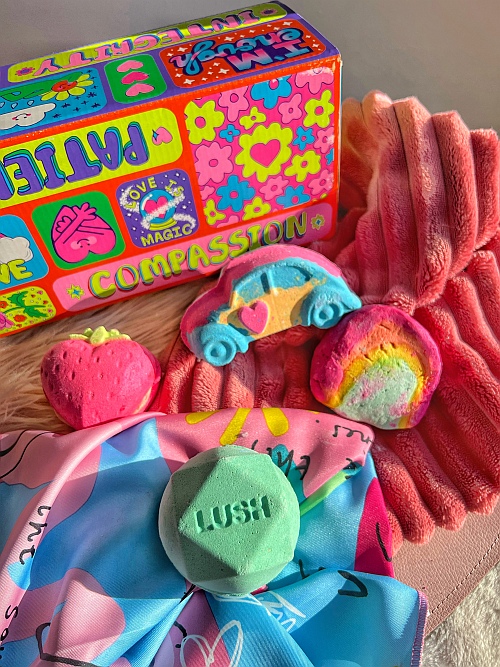 A Lush választéka már látványával is jótékonyan hat az ember lelkére, a vidám színek és formák kavalkádja, amihez az összetéveszthetetlen illat társul, önmagában ez képes kiragadni minket a februári szürkeségből, hát még a Valentin-napi kollekció, ami meg aztán szemérmetlenül rózsás, színes, ultracuki és illatos.