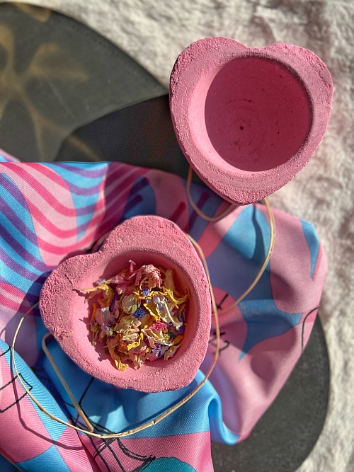 A páros fürdőzés minden intimitása, a Valentin-nap kvintesszenciája jelenik meg ebben a termékben. Nincs mese, ez a csúcs, a szárított szirmokkal töltött óriási fürdőbomba szív, amely minden ízében az sugallja, hogy „Veled szeretnék lenni”. A rózsa és az élénk szicíliai citromolaj együttese teszi teljessé a fürdőbomba illatát, amelyben szárított rózsaszirmokkal laknak. Amíg elpezseg a hatalmas fürdőbomba, a szárított szirmok, bimbók beterítik a víz felszínét.