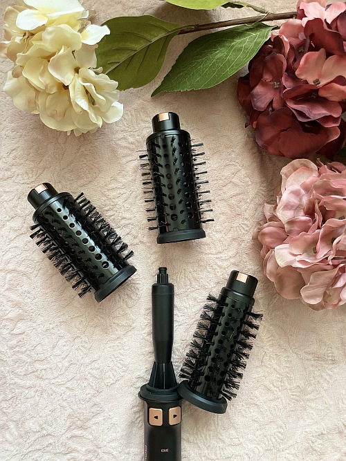 A kefe fejlett Style Assist módja és az automatikus beállításai mellett a választható kefefejek is mind azt a célt szolgálják, hogy különösebb erőfeszítések nélkül, percek alatt olyan frizurába szárítsam a hajam, amiről lazán gondolhatnánk, hogy a fodrászom kezei alkottak. A kefék kialakítása nem véletlen eltérő, hiszen nem mindenki az én teljesen önálló életet élő hajammal van megáldva, amit nagy kedvesen hajlamos rakoncátlannak nevezni a marketing, de ilyenkor azért érződik, hogy a szövegíró haja inkább egyenes, mint „rakoncátlan”. Egyszóval, a nehezen kezelhető haj mellett a ritkásabb, a fejtetőre lapulásban fekete öves hajat is felrázza a szerkezet, a tövétől emelve meg a hajszálakat és a rövidebb, de beszárítást igénylő hajak, frufruk is kaptak egy saját speciális kefét.