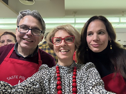 Tegnap este megint nagyon otthon éreztem magam, hangos, vastag emberek közé keveredtem, ahogy Szép Ernő fogalmaz és ebben a jól ismert hangokkal, illatokkal, mozdulatokkal és mosolyokkal kipárnázott létezésben örömmel oldódtam fel. A magyarországi Lengyel Idegenforgalmi Szervezet vendégül látta Szczawnica városát (annak polgármesterével, Bogdan Szewczykkel és jegyzőjével, Piotrek Mastalskival együtt), a Tutajosok Egyesületének képviselőit, többek között Jerzy Regiecet a Pieninekből, akik meg minket vendégeltek meg, nem is akárhogy. A hangulatról ők gondoskodtak, a csodás góral kosztról pedig Artur Majerczak és édesanyja, Halina Majerczak, aki nem csak felkészült a fogadásunkra, de lengyel kérlelhetetlenséggel és lényegretöréssel tanította meg, hogyan készítsük tökéletesre a pierogit és a levesbetétként szolgáló uszkit, azaz fülecskéket.