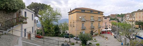 Mivel más éttermet nem ismertünk és nem is nagyon láttunk a környéken, így arra az álláspontra jutottunk, hogy amíg kinyit a hely, addig felmegyünk Altavilla Silentinába és jól körülnézünk. A hegyre kúszó út végén található falucska számára eseményszámba ment az érkezésünk. A főtér kávézója előtti placcon férfiak kártyáztak, a kölykök halált megvető bátorsággal bicikliztek a keskeny és meredek utcákon, a többiek meg a fák alól sandítottak ránk. Mi jó turisták módjára minden megcsodáltunk, mindent lefotóztunk, majd miután a falu két éttermét is zárva találtuk, éhesen alászálltunk Cerrellibe.