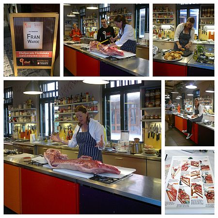 A bemutató alapját azonban ez az ominózus gyömbérdisznós könyv alkotta, erős gerincet adva az estének. A szemmel láthatóan hentessé fejlődött Fran lelkesen és igen szemléletesen vezetett minket a hús misztikus világába, miközben folyamatosan főzött, beszélgetett, kérdezett. Szemmel láthatóan izgalmasnak találta a magyar konyhát (libatöpörtyűvel aznap találkozott először) és tele volt megválaszolásra váró kérdésekkel.