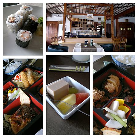 Mire megettük a makikat, a rendkívül kedves pincérünk egy-egy lakk bento dobozzal és egy-egy tálka rizzsel tért vissza hozzánk. Amikor faggatni kezdtem, készségesen elmagyarázta, hogy melyik étel miből és hogyan készül. Erre a fajta felkészültségre szükség is van, ha értő, visszatérő vendégeket kíván nevelni bármely, a miénktől eltérő konyha. Egyébként az is nagyon tetszett, hogy az étterem erre a rendkívüli hétre kétféle menüvel készül. Egy halassal és egy húsossal. Mi a japán konyha halas fogásait ismerjük, szeretjük, de az étterem részéről bölcs gondolat volt húsos menüvel várni azokat, akik kissé bizalmatlanok, félszegek, s bár eljöttek, mert kíváncsiak a japán konyhavilág ízeire, de a halas ételektől még ódzkodnak.