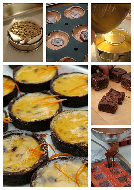 Lacival a – délutáni forgatagban felfalt, eszméletlenül finom – csokoládé fondant mellett alkottunk egy gyümölcsszívvel ellátott csokoládé mousse desszertet és egy abbahagyhatatlan omlós tésztával készített Grand Marnier tart-ot.