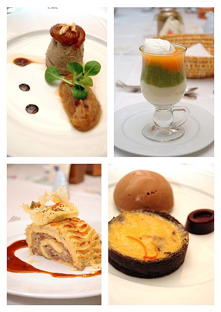 A kacsamájból formált minyon, a krémlevesből készített pohárkrém után, zárásként egy konfitált malachússal töltött „fatörzset” kaptunk, majd jöttek a délután készített és akkor hirtelenjében fel nem falt süteményeink és az éjszakába nyúló beszélgetések.