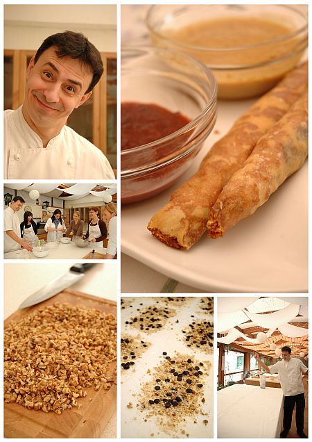 Az egész úgy kezdődött, hogy Bálint-naphoz legközelebb eső hétvégére egy tisztes édességkurzust szerveztünk Eszterrel és Anikóval. Már a gondolat kapcsán éreztük azt a jóféle bizsergést, amit a telitalálatok okoznak az emberben. Most szombaton élőben is megtapasztalhattuk, hogy bizony szívesen lennénk gyakori látogató egy olyan cukrászdának és egy olyan cukrász mesternek, mint Mihályi László a váci Desszertszalon tulaja és főcukrásza.