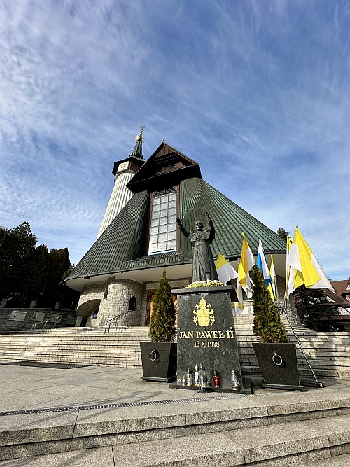 Az időjárás szintén kedvezett nekünk, amíg a II. János Pál pápa elleni 1981-es merényletet követően, közadakozásból felépített Fatimai Szűzanya templommal ismerkedtünk, hol kisütött, hol picit elborult, bebújva a Tátra vonulatai mögé. A templomhoz pénzzel és munkával járult hozzá a keresztény közösség, lengyelek, górálok és külföldi hívek egyaránt, az eredmény pedig egy tekintélyt parancsoló, de koránt sem rideg épület lett. A templom szépen hozza a környéken fellelhető fatemplomok évszázadok építészeti hagyományait és mutatja meg azt, amiben a lengyel építészet egyszerűen zseniális, az adaptációra való igényt, az igényességet és ennek tökéletes kivitelezését: nem valamilyen, nem majdnem olyan, nem testidegen, nem látszik valaminek, hanem egyenes ági leszármazottja a góral építészetnek, annak folytatása, a 20. századra szabva. A várost járva és Krakkóba érve is egy volt az egyik legkellemesebb felfedezés: a ragaszkodás a népi kultúrához és annak – giccsmentes, igényes és ízléses – továbbvitele, megfeleltetve a jelen kor elvárásainak.