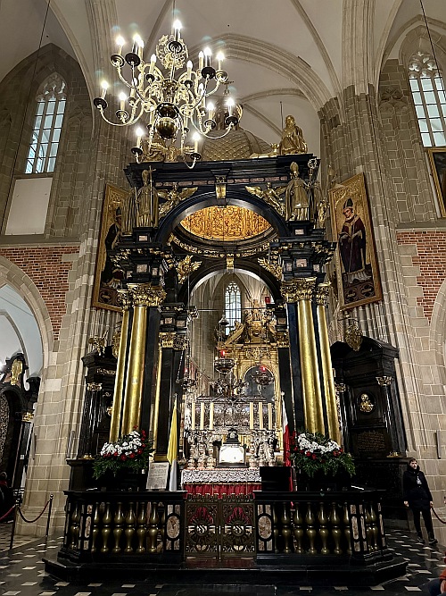 A templombelső zavarba ejtően szép. Nem hatalmas, nincsenek akkora terei, mint az olasz templomoknak, otthonos, biztonságot sugárzó, elegáns, de nem barátságtalan. Esélyes, hogy a Tátrában ránk találó havazás és a Krakkóban ebből süvítő széllel kevert mínuszok okozta tévképzet volt csupán, de kellemesen temperáltnak tűnt a templom, jólesett végigjárni, elmélázni, majd a teljes körűen felújított Veit Stoss szárnyas oltárral szembeni padok egyikére lerogyni és hagyni, hogy a látvány beivódjon a retinánkba, hogy az arany ragyogásán túl meglássuk a valódi nagyságot és a mester elképesztő munkáját.
