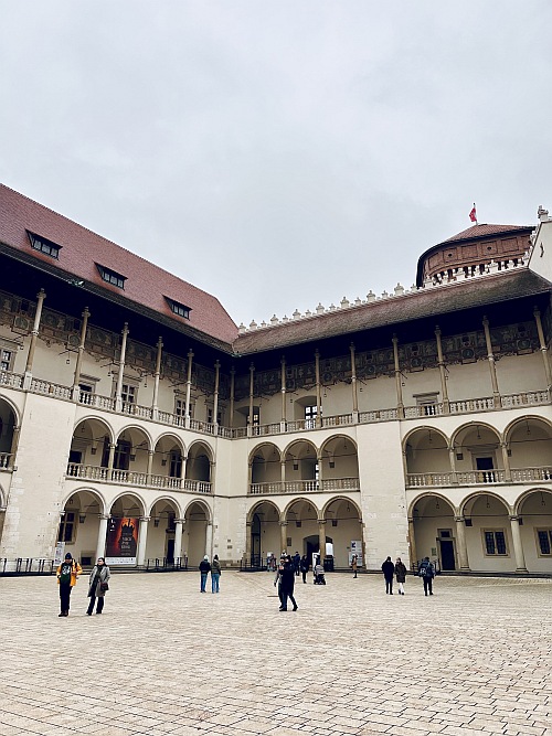 A templom után még megcsodáltuk a reneszánsz palota udvarát, Tibortól meghallgattuk a Wawel vérzivataros évszázadait, amíg hol laktanyaként üzemelt, hol széthordták, hol a szocialista gyáripar savas esői tették tönkre a laza mészkőből emelt elegáns oszlopokat.