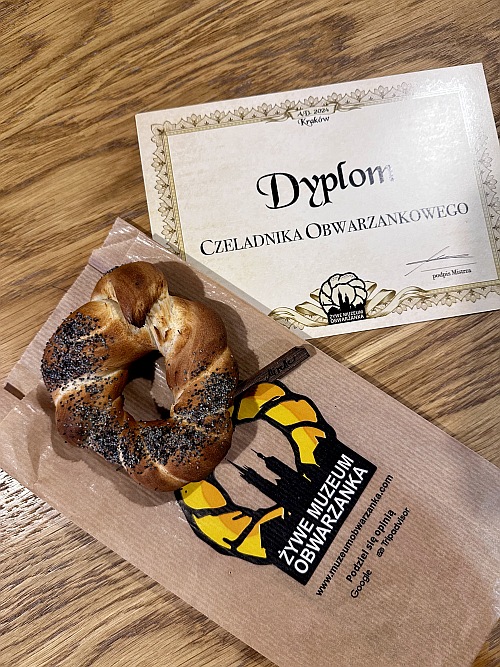 Az obwarzanek vagy obwarzanka maga Krakkó. A kerekperec itt a helyi street food, nem turistás újítás, semmi múlthamisítás, itt perecet esznek a lengyelek, jövet-menet, napközben, ha épp elkapja őket az éhség. Boltot sem kell ehhez keresniük, a kerekperecek kékre festett, üvegezett taligákon sorakozva várják őket, van sós, szezámmagos és naná, hogy mákos is. A perec frissen az igazi, másnap már kétséges, hogy megéri-e beleharapni, de mondjuk mártogatva még akkor is meg van a maga létjogosultsága. Az Obwarzanka Múzeumban már pár éve jártam, akkor a férjemmel tandem alkotásban voltunk, közös asztalon nyújtottuk, sodortuk, pödörtük és tekertük a tésztát, miközben egy cuki animációs kisfilm bemutatta a kerekperec nem épp ma indult történetét.